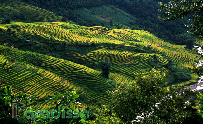 Glowing rice terraces at the The Pa Valley at Y Ty
